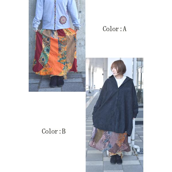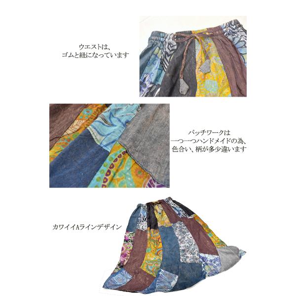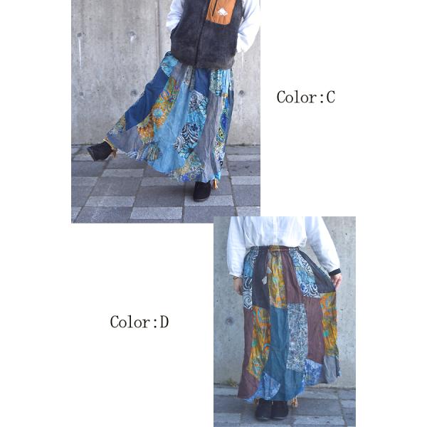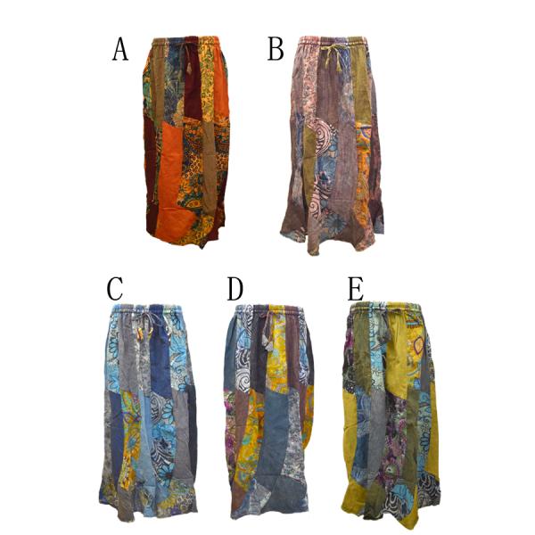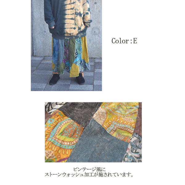 ストーンウォッシュ パッチワークスカート ビンテージ風スカート ミディアム丈 春 夏 秋 エスニックスカート スカート