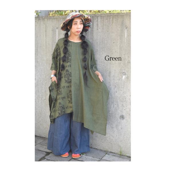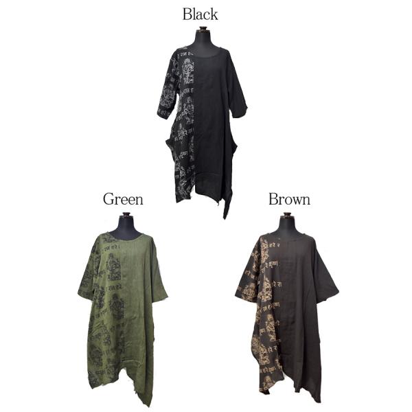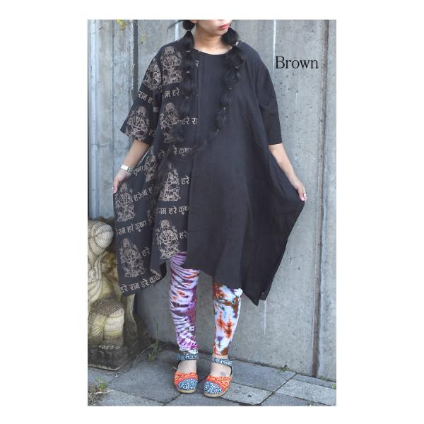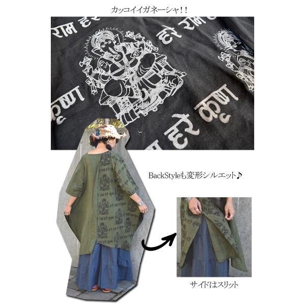 変形 半袖 ワンピース チュニック トップス ガネーシャ エスニックファッション アジアン バリブラン 個性 コットン