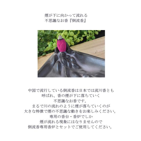 専用の香台・香炉でしか煙が流れる現象にはなりませんので倒流香専用香炉とセットでご使用してください。