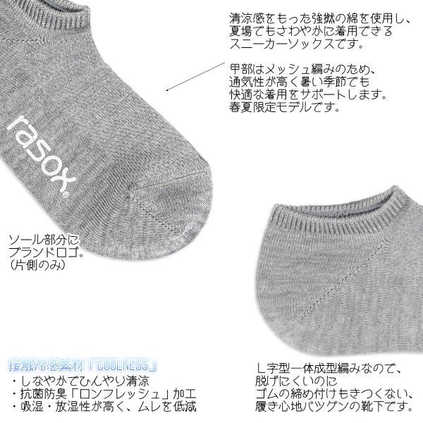 rasox ラソックス 後継ブランド 靴下 ソックス 夏用 冷感素材 クールネススニーカー コンフィハウス コンフィーハウス COMFY HOUSE 定番 メンズ レディース