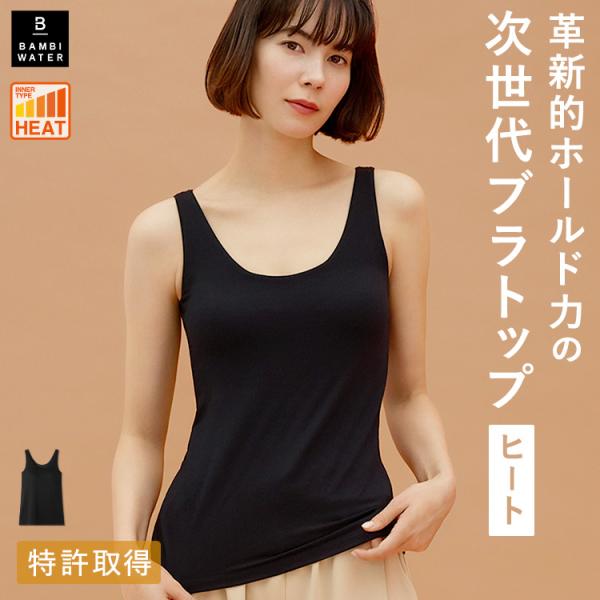 ブラトップ タンクトップ カップ付き リブ 盛れる 締め付けない 大きいサイズ 楽 バンビウォーター 爆買 秋冬