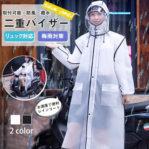 \前も横も雨をシャットアウト/【4/10迄割引クーポン配布中】レインコート 自転車 レインウエア 梅雨対策 リュック対応 二重バイザー ポケット付き