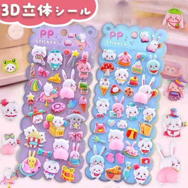 【お得4枚セット1479円】 ぷくぷくシール ぷっくり 立体 シール 10種類 3dシール かわいい 人気 キャラクター