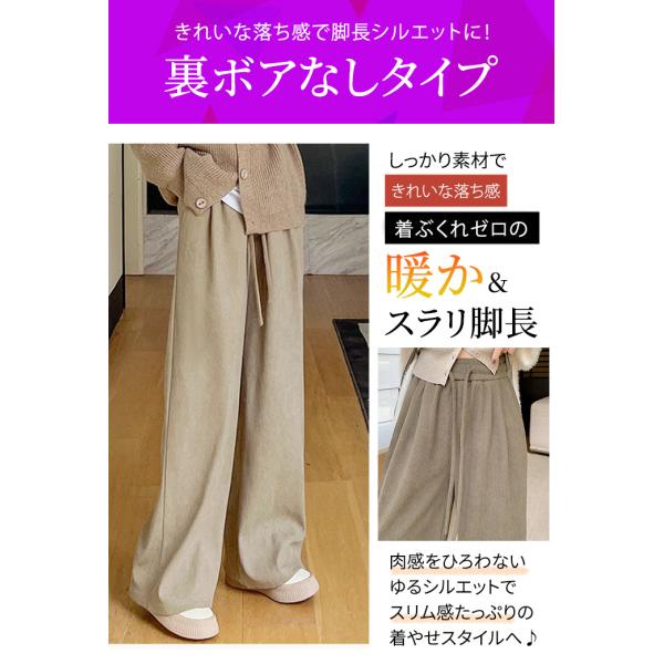 レディース パンツ 裏ボア ワイドパンツ 暖かい 丈が選べる コーデュロイ イージーパンツ ウエストゴム 爆買