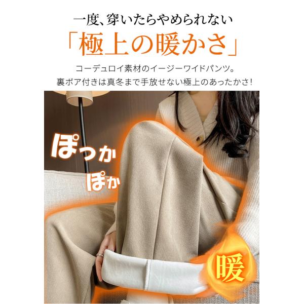 レディース パンツ 裏ボア 暖かい 冬 丈が選べる コーデュロイ ワイドパンツ イージーパンツ ウエストゴム 爆買