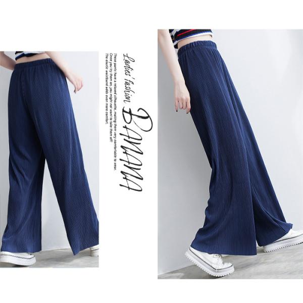 パンツ レディース セルフカット 切れる プリーツ 光沢感 縦ライン 高見え 高身長 低身長 リブパンツ ワイドパンツ イージーパンツ 裾カットOK ウエストゴム リラックスパンツ ボトムス 大きいサイズ 体型カバー 春 夏 お洒落 カジュアル かわいい 秋