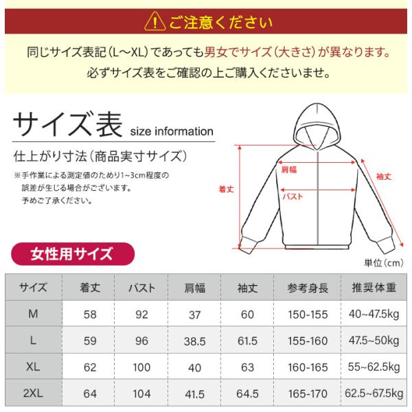※同じサイズ表記(M/L/XL/2XL)でも、男性用と女性用でサイズ(大きさ)が異なりますので、サイズ表でご確認の上ご購入くださいませ。