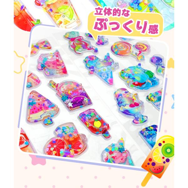 ウォーターシール 水入りシール ラメ かわいい ぷっくりシール ぷくぷくシール 水シール 3D 立体 水ステッカー 3Dシール スパンコール入り キラキラ