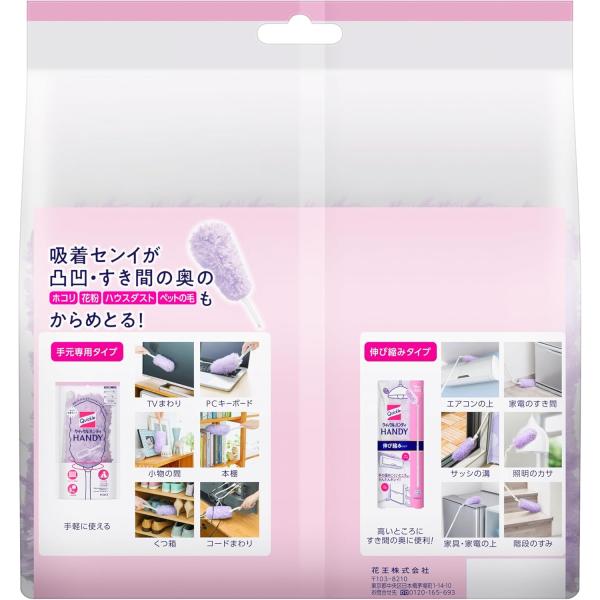 両面のもふもふが、ホコリをごっそり吸い付ける! 吸着センイが凸凹・すき間の奥のホコリ・花粉・ハウスダストもからめとる!PC/TVまわりや本棚、小物の間、サッシの溝など、色々な場所に使えます。クイックルハンディ・クイックルハンディ伸び縮みタイプ、どちらにも使えます。
