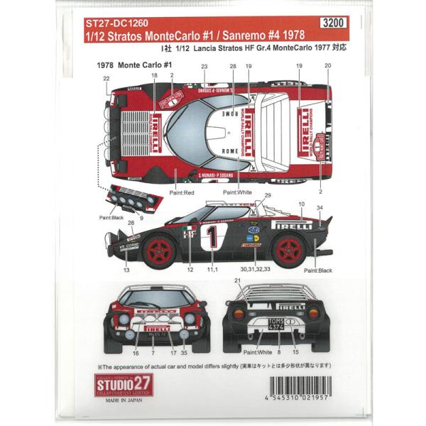 1/12 ランチア ストラトス #1 Monte Carlo / #4 Sanremo 1978 イタレリ対応 スタジオ27デカール DC1260