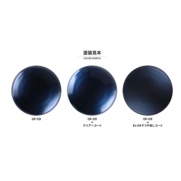 黒から紺に変化する偏光パールです。紺色のメタリックとして使うのはもちろん、黒の代わりに使用することで表現の幅が広がります。パールカラーなのでクリアーコートが可能です。またつや消しにすると上質なビロードのような質感を表現できます。(Ex-04フラットクリアーを推奨)その他マフラーの焼け表現や、パネルラインの強調など様々な用途で使えます。