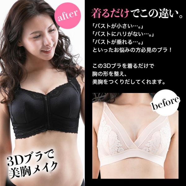 レディースブラジャー 前ファスナー ノンワイヤー フロントファスナー バストアップ ブラ 大人 3Dブラ 大きめ 超盛り グラマー 補正ブラ 脇肉 送料無料