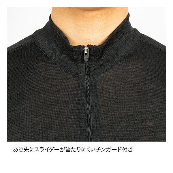 メリノウール本来の保温・調湿性と高機能ポリエステルの吸汗速乾加工を兼ね備えているため、蒸れにくく汗を素早く乾かします。
