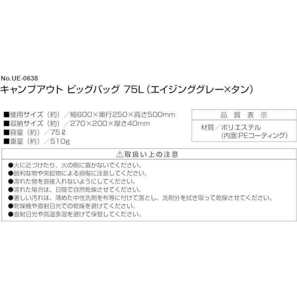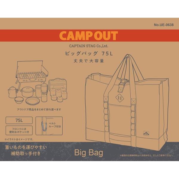 キャプテンスタッグ キャンプアウト ビッグバッグ 75L UE-638 エイジンググレー×タン 大容量 バッグ アウトドア キャンプ 肩掛け CAPTAIN STAG