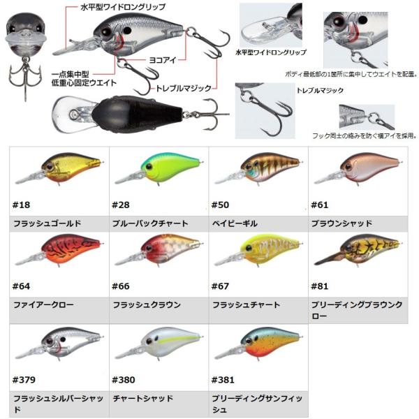◇スモールボディかつ固定ウエイトながらベイトタックルで楽々キャスト。スモールクランクの常識を超える圧巻の飛距離を叩き出す。◇しっかり水を掴んで水を動かすキレのあるアクション&ブルブルと手元に伝わる引き感。通常サイズのクランクベイトと同じ感覚で使える。◇浮力、根掛かり回避性能、急速潜行能力。スモールクランクとは思えない使用範囲の広さを持つ使い勝手の良いスモールクランクベイト。