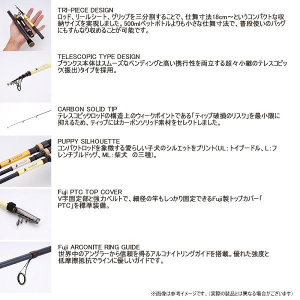 「魚、いないかな?」旅の途中、ふと通りかかる川や海。その水辺を覗き込むのは、釣り人なら誰しもがやってしまう無意識の行動です。アウトバックパピーは、「ここで釣りをしてみよう!」と思ったその瞬間に応えてくれる一本。即座に釣りを始められるよう、仕舞寸法の小ささにとことんこだわったテレスコピックロッドです。ロッド、リールシート、グリップを三分割した設計により、手のひらに収まるほどのコンパクトさを実現しました。