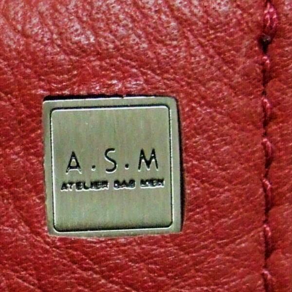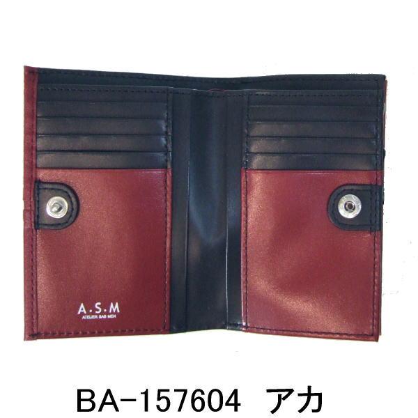 ボタンホックを開けるとカードポケットが片面5つずつと差し込みポケット片面2つずつ付いています。 前面側下方中央にA.S.M ATELIER SAB MENの銀色箔押し。