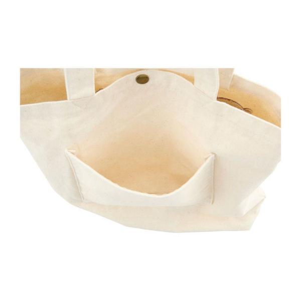 【素材】綿【容量】約14L【サイズ】約W33cm×H39cm×D8cm 【重さ】約260g 【生産国】中国軽くて丈夫な綿の帆布生地。絵柄部分が刺繍になっています。メインルームはボタンホック式天オープンタイプです。A4ファイルが入るサイズです。本体内部の背面側に吊るしのミニポケット。背面にオープンポケット。