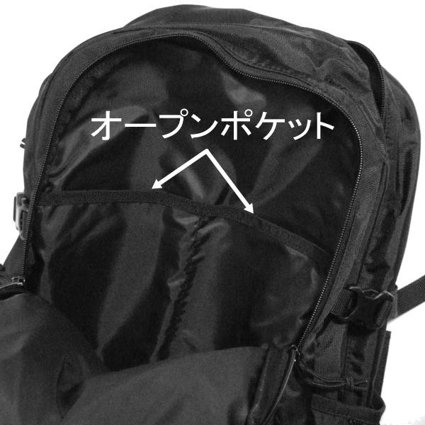 本体ポケット前面に刺繍ロゴ。内部の背面側に2分割されたオープンポケット。