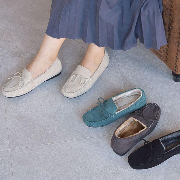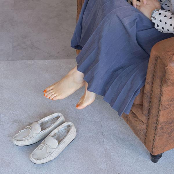 内側が全面ボアのモカシンシューズは暖かく、さっと履くだけで秋冬のコーデが決まる定番アイテム。