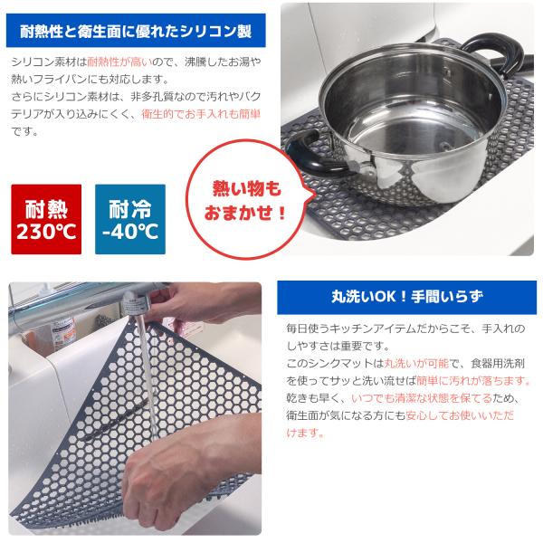 シンクマット シリコン 撥水 耐熱 最大230℃対応 滑り止め 流し台 マット すのこ 水切り 流し用すのこ 水切りマット 水周り用品