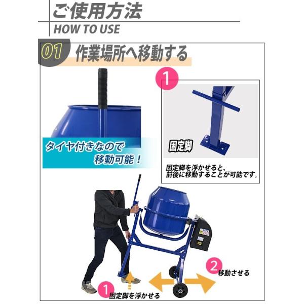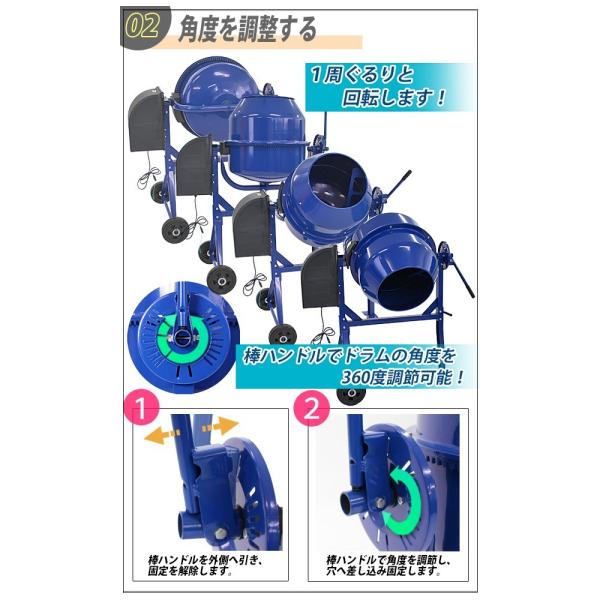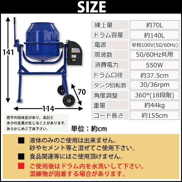 コンクリートミキサー 青 練上量70L ドラム容量140L 電動 モーター式 100Vモーター 混練機 攪拌機 かくはん機 コンクリート モルタル 堆肥 肥料 飼料 園芸