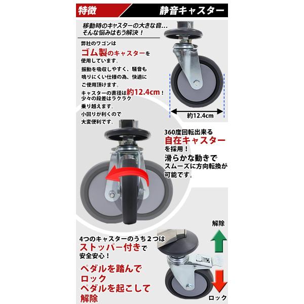 ●後方のキャスターはストッパー付きです。
