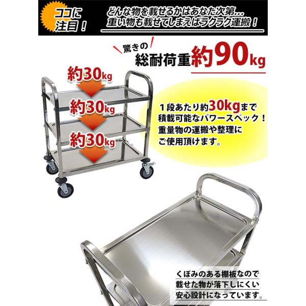 ワゴン ステンレス サービスワゴン 3段 Sサイズ 防振 総耐荷重約90kg ステンレスワゴン キッチンワゴン キャスター バンパー サービスカート 配膳ワゴン