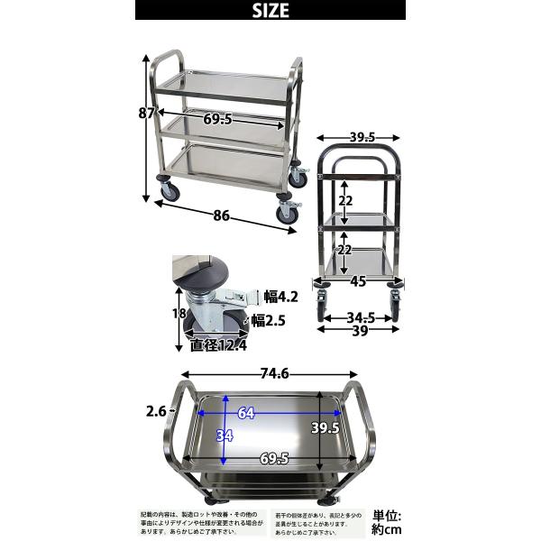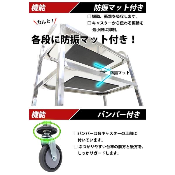 防振マット付き3段ステンレスサービスワゴン!