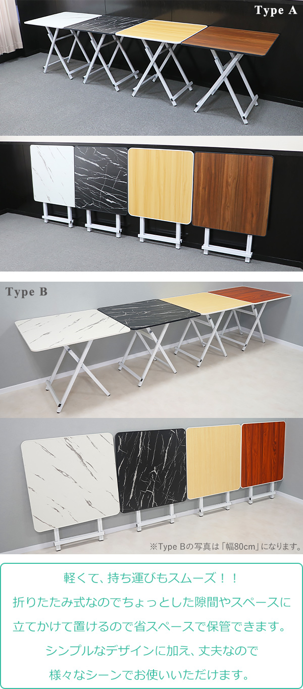 折りたためて省スペースで保管可能!折りたたみ式テーブル