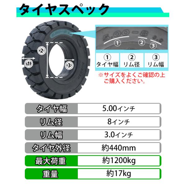 フォークリフト用タイヤ ホイール無し タイヤのみ 1本 タイヤサイズ 5.00-8 リム幅 3.0 ノーパンクタイヤ フォークリフト用ノーパンクタイヤ フォークリフト