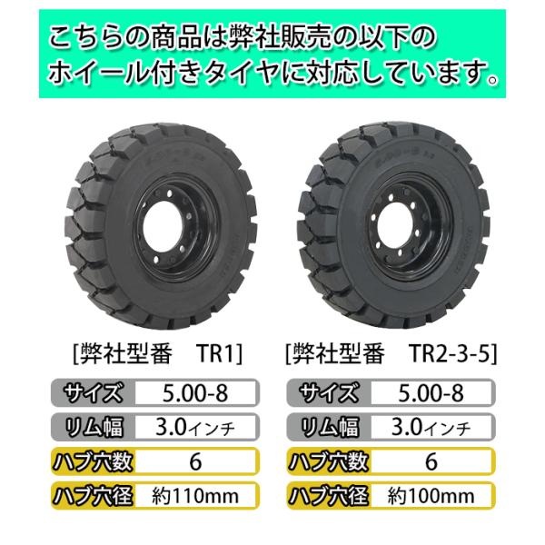 ●こちらの商品は弊社販売のホイール付きフォークリフトタイヤ「TR1」、「TR2-3-5」に対応しています。