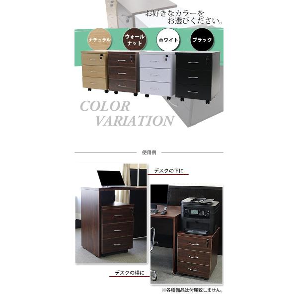 選べる4カラー 3段 サイドチェスト 半完成品 約W40×D48.5×H55.5 鍵付き キャスター付き オールロック サイドキャビネット サイドワゴン デスクワゴン チェスト