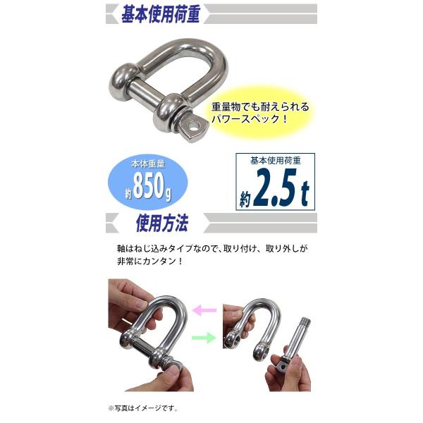 ステンレスシャックル JIS規格 ねじ込みタイプ M20 線径約20mm 開口約40mm 使用荷重約2.5t 約2500kg SUS304 JIS ステンレス製 ねじシャックル SE型 半丸