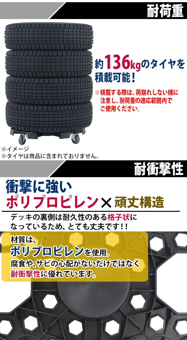 タイヤドーリー タイヤキャリー 耐荷重約136kg 積載可能タイヤ径約500〜700mm 1台 キャリー ラック 台車 タイヤ交換 交換 メンテナンス 積み重ね タイヤ収納