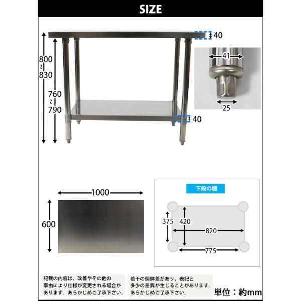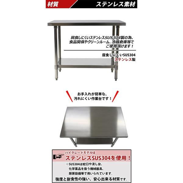 オールステンレス作業台 2段 耐荷重約190kg 約幅1000×奥行600×高さ800mm SUS304 ハイグレードモデル ステンレステーブル ワークテーブル ステンレス台 業務用