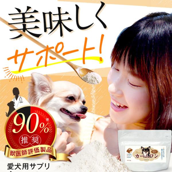 商品説明 「カームワン」 犬 サプリメント サプリ DHA リラックス プロポリス GABA テアニン カキエキス EPA 粉末 チキン 風味 わんちゃんライフ