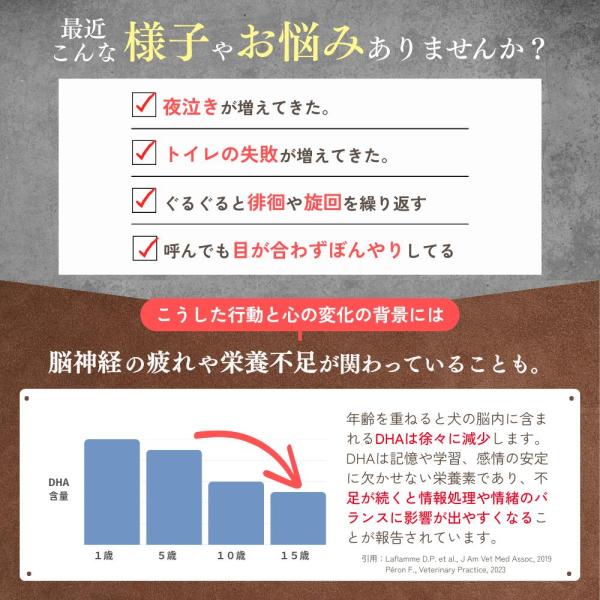 ・【犬の認知機能の健康維持に!】体内で生成できない必須脂肪酸の「オメガ3脂肪酸」をDHA・EPA・亜麻仁油から豊富に含んでおります。
