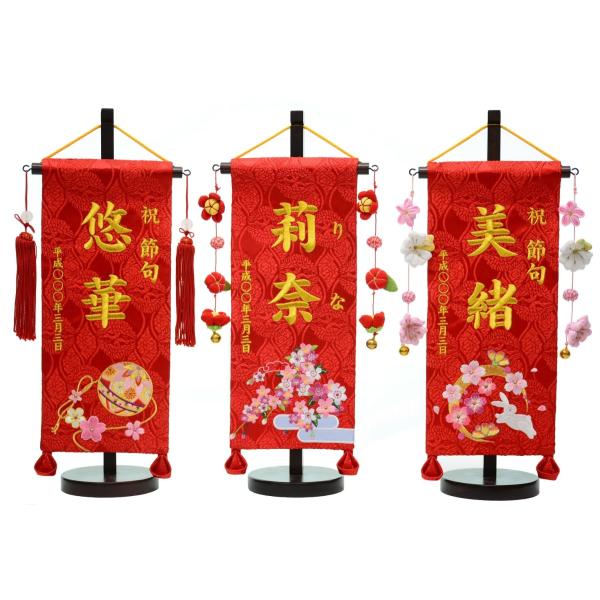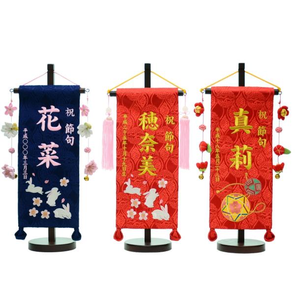 選べる8種 名前旗 刺繍名旗台付きセット(小)旗サイズ30cm 青花兎 花兎 手毬 華鞠 華輪 恋桜 二蝶 青恋桜 ひな祭り 雛人形 女の子