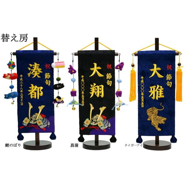 名前旗 金襴名前掛軸 開運龍虎 開運菖蒲紋入り 専用飾りスタンド付 飾り房付 節句 掛け軸 名前 命名掛軸 五月人形 男の子