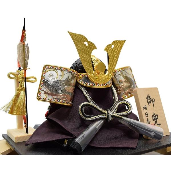 【兜飾り】 彫金兜 彫金龍吹返 5号 弓太刀付 【ケース飾り】【五月人形】【コンパクト】