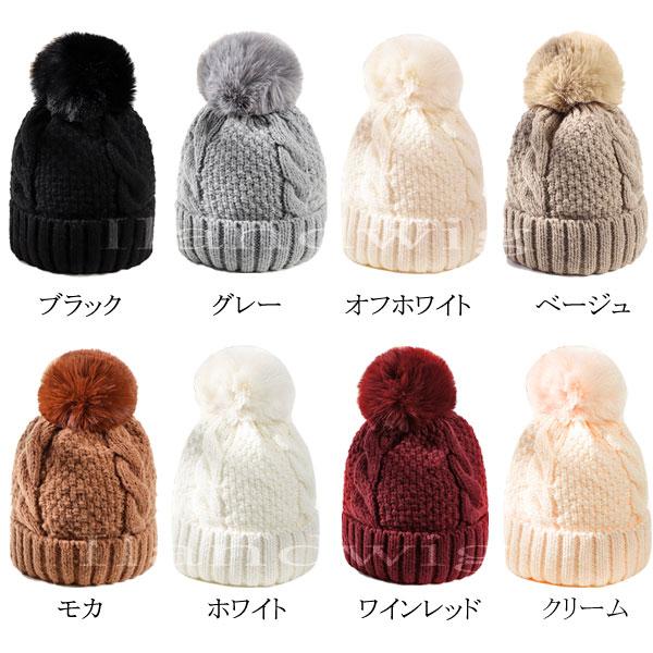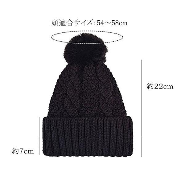 ボンボン ニット帽 ケーブルニット ボア付き 厚手 帽子 ニットキャップ ぼんぼん ビーニー メンズ レディース 秋 冬 KNIT CAP 4761