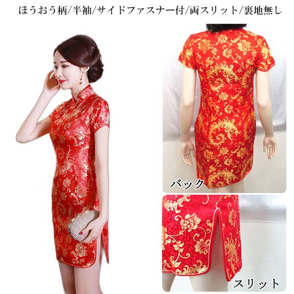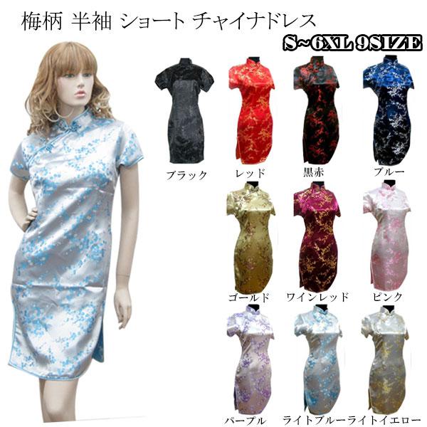 チャイナドレス S〜XXL パーティードレス チャイナ ドレス ミニドレス チャイナ服 半袖 梅柄 龍(りゅう) ほうおう柄 ショート丈 コスプレ衣装 China Dress 1000