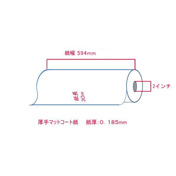 大判プリンター用紙 インクジェットロール紙 厚手マットコート紙 594mm×30M 2本 A1ロール紙