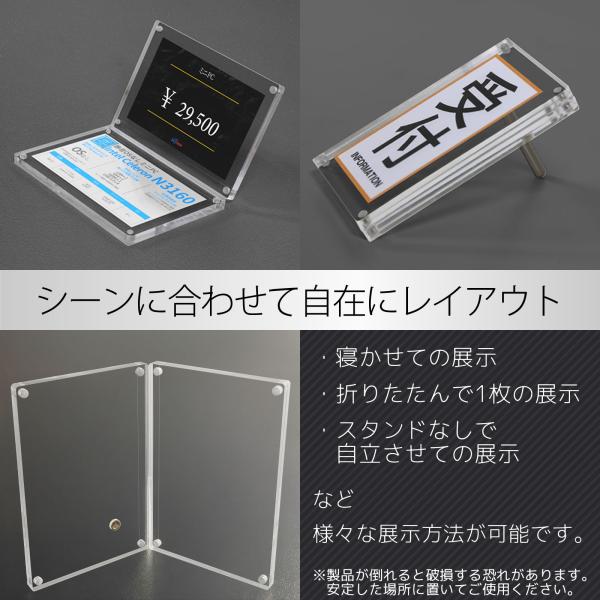 2枚いっしょに飾れる フォトフレーム チェキサイズ 折りたたみ アクリル マグネット式 チェキ 名刺 ショップカード スタンド 透明 クリア 推し活 ギフト FA-01