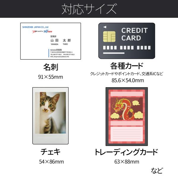 クレジットカードや交通系ICカード(85.6×54mm)、トレーディングカード(63×88mm)など。