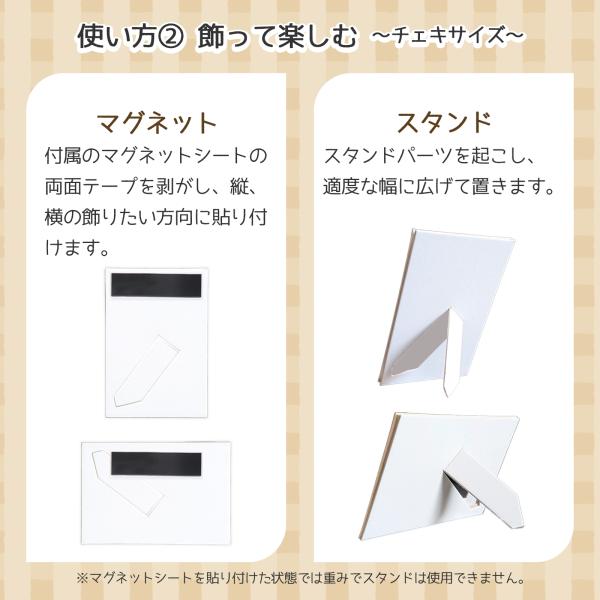 ※マグネットシートを貼り付けますと、重みでスタンドで立たせることができなくなります。