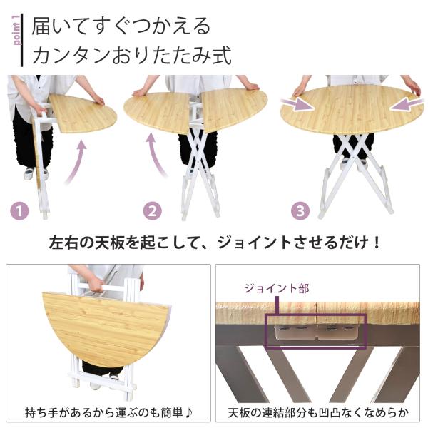 【組立いらず!届いてすぐ使える折りたたみ丸テーブル】
