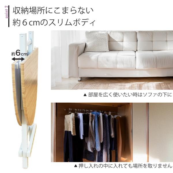 組み立て不要の折りたたみ式なので、届いてすぐに使える便利な丸テーブルです。
