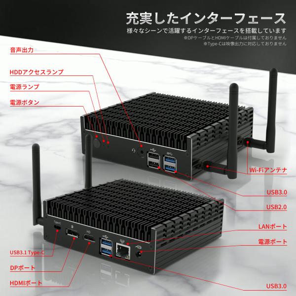 【インターフェース】1xHDMI、1xDP、1xLAN、2xUSB 2.0、4xUSB 3.0、1xUSB 3.1(Type-c)、1x音声出力